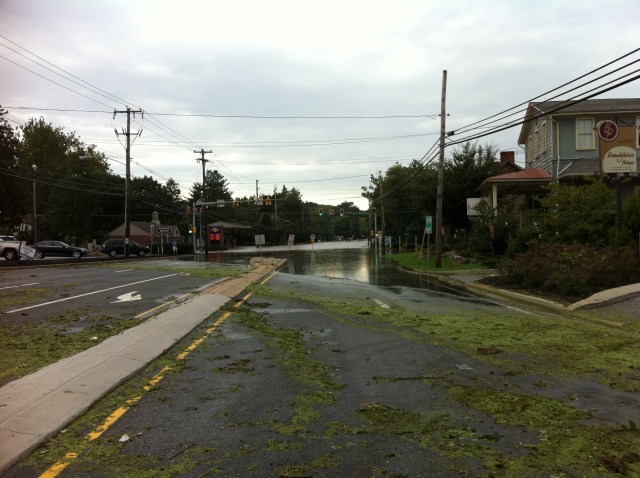 Took a walk down to Creek Rd and Rte 1 to see how bad the flooding was. For those who didn’t go by, here’s a view of the high-water line of swamp scum. I’m standing even with Brandywine Prime. George Thorpe and Joe Barakat were there monitoring the state of affairs.